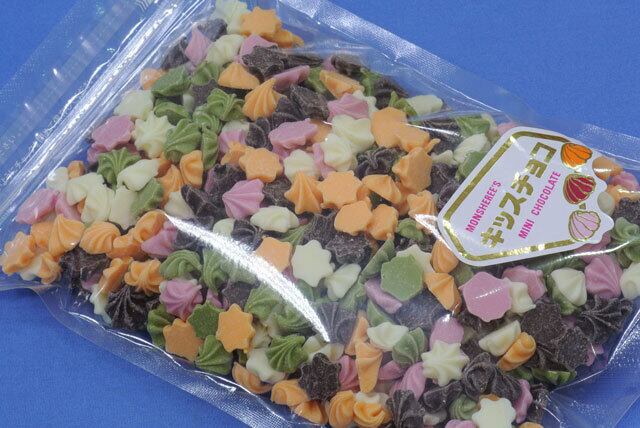 ☆【常温便】フラワーキッスチョコチョコ(たっぷり500g)はブラック(ビター)、ホワイト、オレンジ、抹茶、ストローベリーのチップチョコレートミックス、お花の様なチョコレートです。